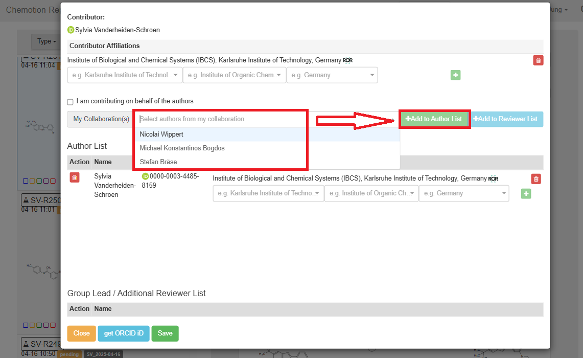 1. First, ensure authors are in your collaboration list using the My Collaborations function.