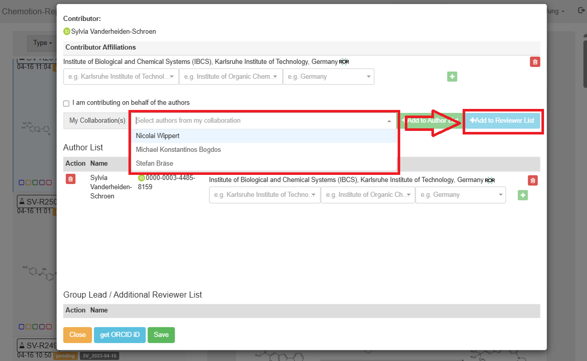1. First, ensure reviewers are in your collaboration list using the My Collaborations function.